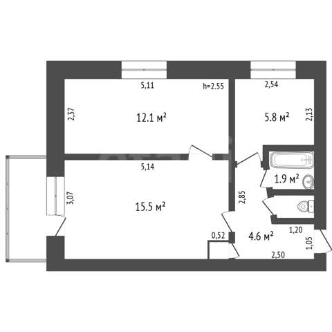 ✅ 2 просторные комнаты 15,5 и 12,1 кв.м.